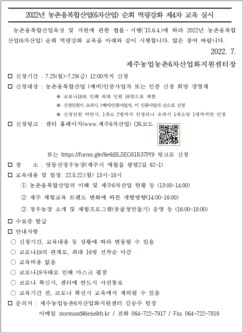문의 : 064-722-7917 (김승주팀장)