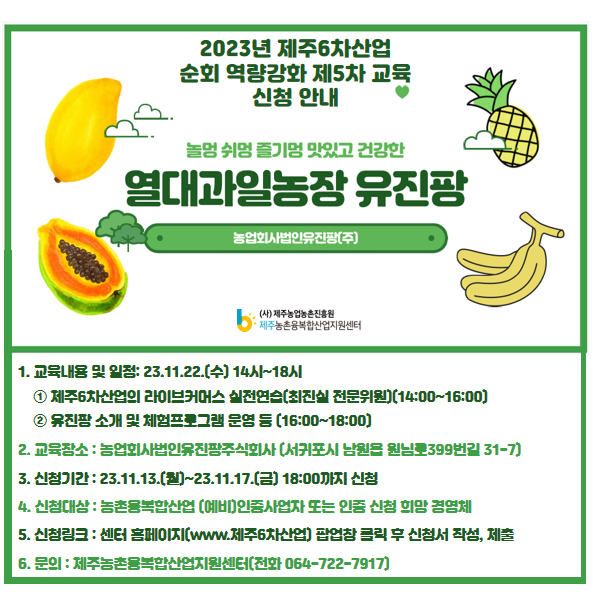 - 강의장소 : 유진팡 열대과일농장(서귀포시 남원읍 원님로399번길 31-7)