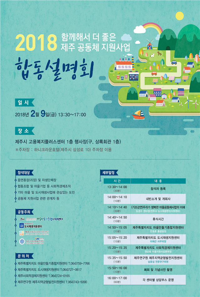 - 제목 2018 함께해서 더 좋은 제주 공동체 지원사업 합동설명회 개최!