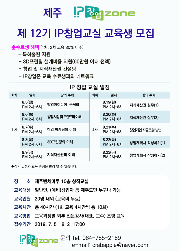 2019년 제12기 IP창업교실 교육생모집