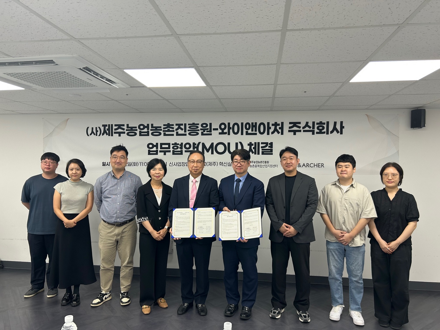 오늘 8월 12일(화), 제주농업농촌진흥원과 글로벌 액셀러레이팅 기업 와이앤아처가 업무협약(MOU)을 체결했습니다.