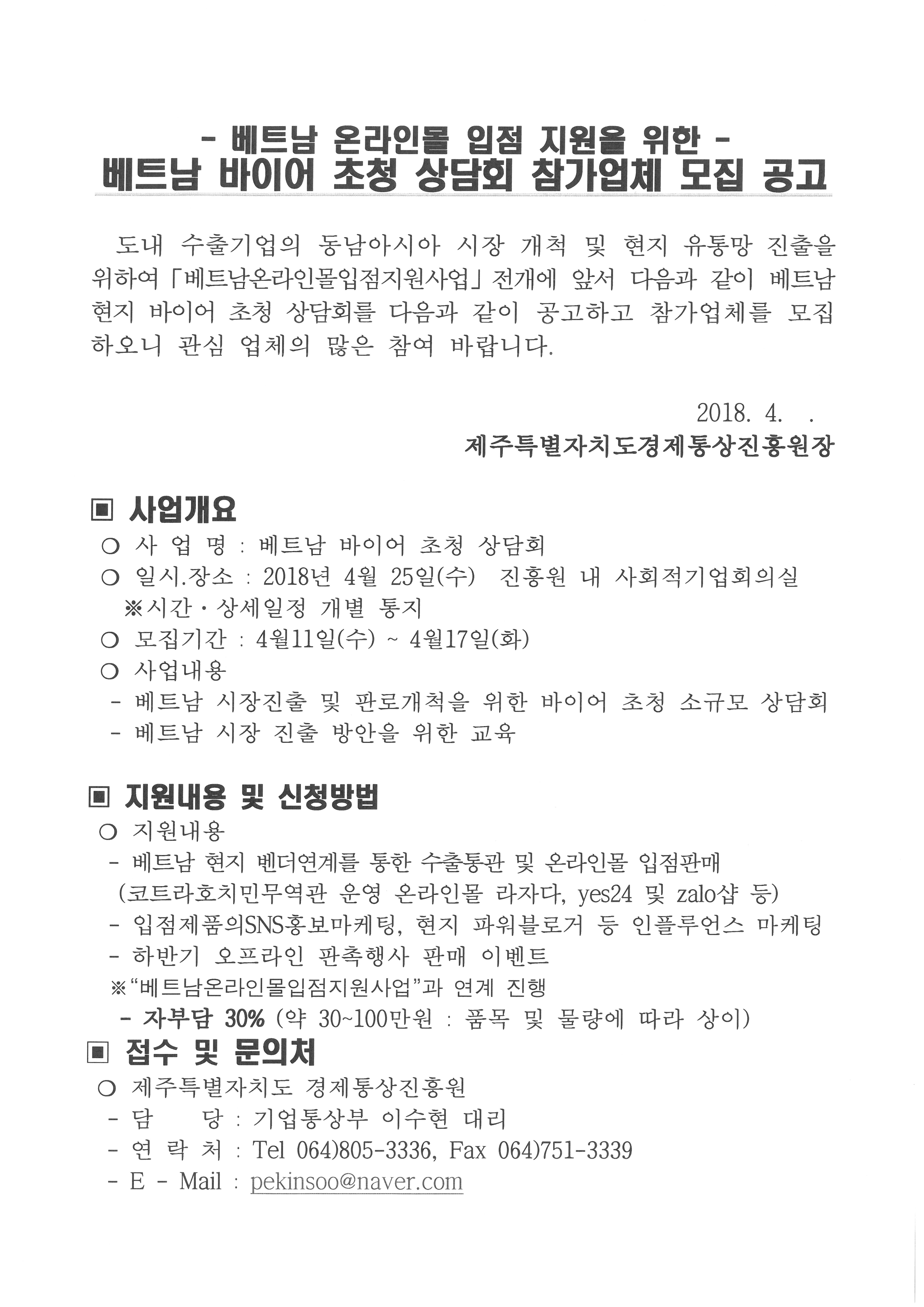 베트남 바이어 초청 상담회 참가업체 모집 공고 - 경제통상진흥원