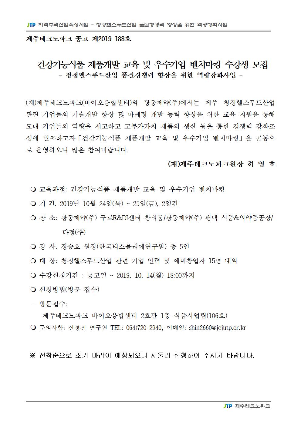 건강기능식품 제품개발 교육 및 우수기업 벤치마킹 - 제주테크노파크