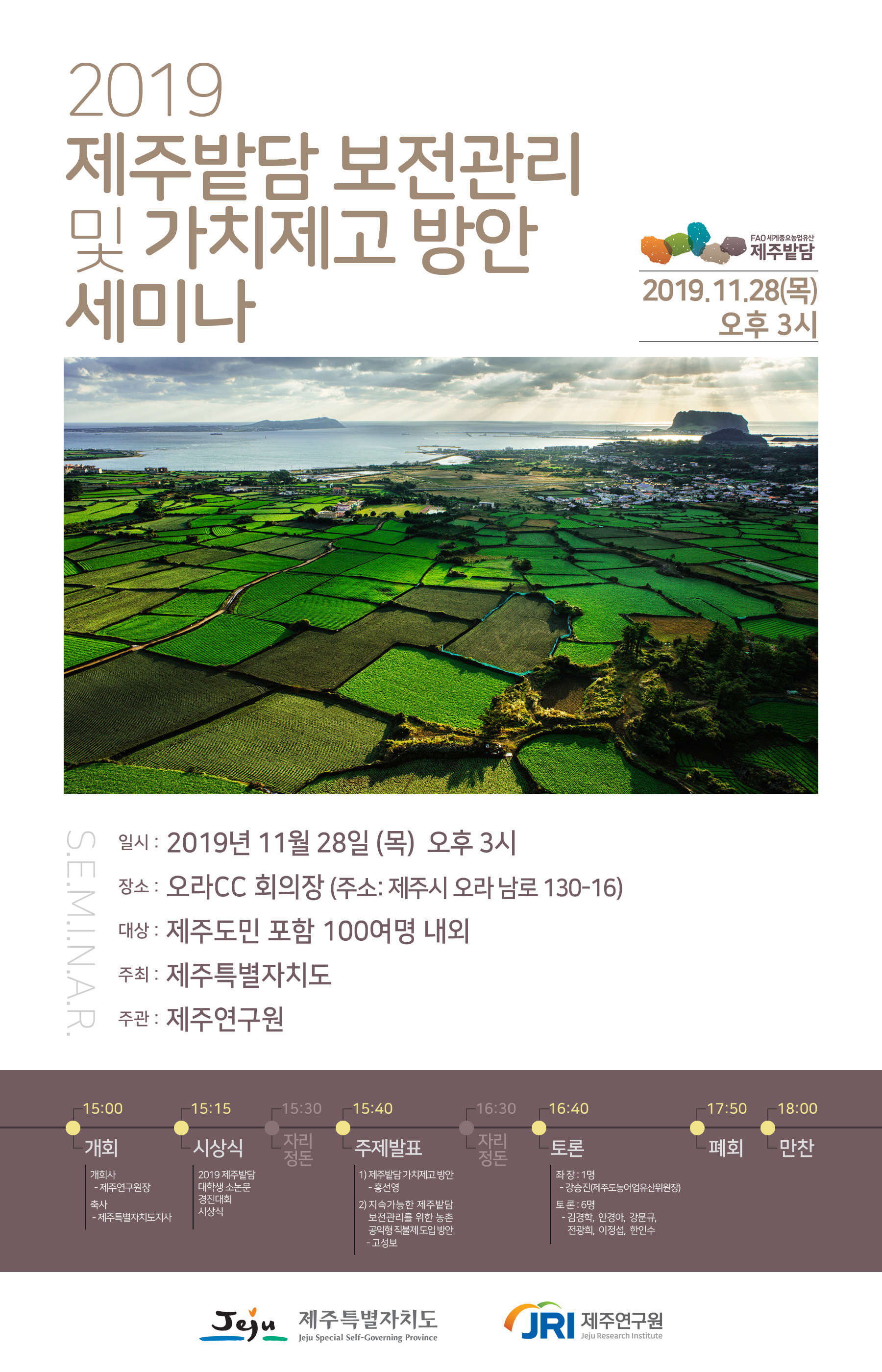 2019년 제주밭담 보전관리 및 가치제고 방안 세미나 개최!